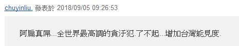 也有网友讽刺,这就是“台湾之光”“全世界最高调的贪污犯”。
