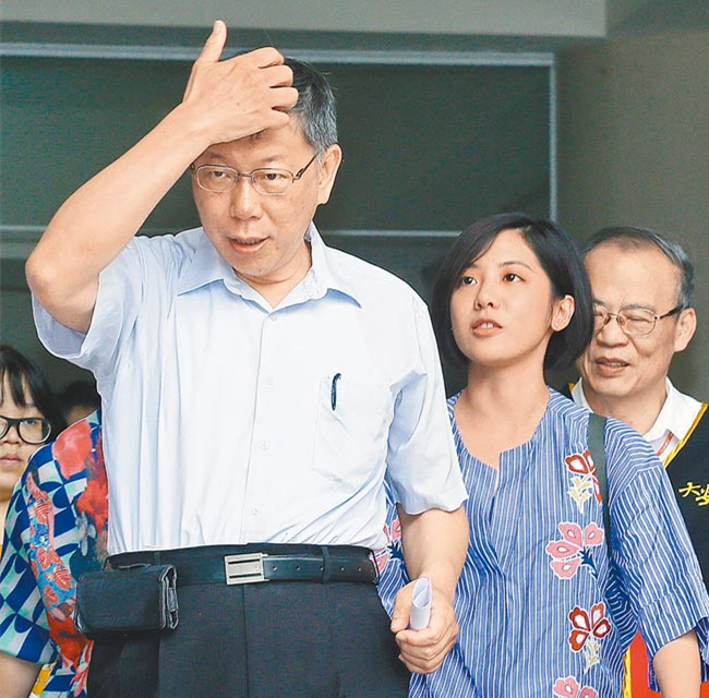 台北市长柯文哲(左)与幕僚黄瀞莹(右)。(图片来源:台湾“中时电子报”)