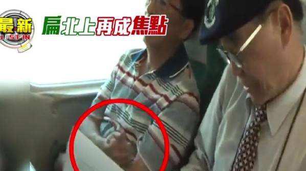 早前陈水扁乘高铁北上,看到记者的镜头马上伸出手来对着镜头抖。