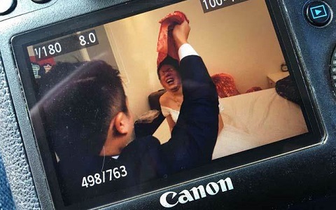 中国台湾网10月29日讯 据台湾“中时电子报”报道,一名婚礼摄影师PO出照片“求新郎内心阴影面积”:只见一名新郎掀起新娘盖头,却惊见台北市长柯文哲“仰天大笑”的招牌表情。