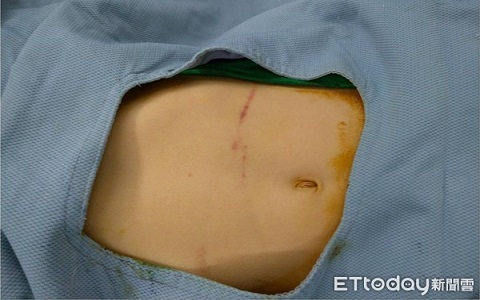 林雨利主任表示,虽然超音波检查未发现有异状,X光显示腹部有涨气,但抽血检查发现其肝指数偏高,进一步做电脑断层时,发现显影剂有外渗情形,本来应该在血管里的显影剂已渗到腹腔,怀疑肠胃道有破裂情形,经紧急开刀,赫然发现胃部下方幽门附近完全断裂,断裂的两端正在出血,伤口平整,宛如遭利刃切断,立即将断成两半的胃接合。