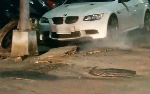 中国台湾网11月22日讯 据台湾“东森新闻云”报道,高雄光复三街凌晨突然传出一起爆炸声响,被惊醒的民众赶紧出门查看后发现,不仅路面被炸裂,人孔盖不断传出浓烟,就连停在附近的一辆BMW白色轿车也惨遭碎石喷溅。