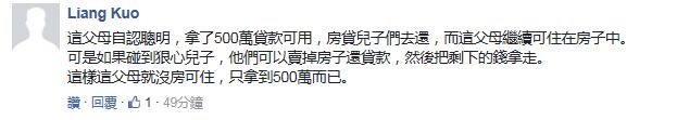 但该网友父母却表示,自己当年是花了850万才购买到此栋房子的,加上养育两兄弟时也花费了不少,此番为了让两兄弟知道成家立业的困难,才会向银行贷款,更向两儿子撂下狠话“要缴就缴,不缴就滚出这个家”。