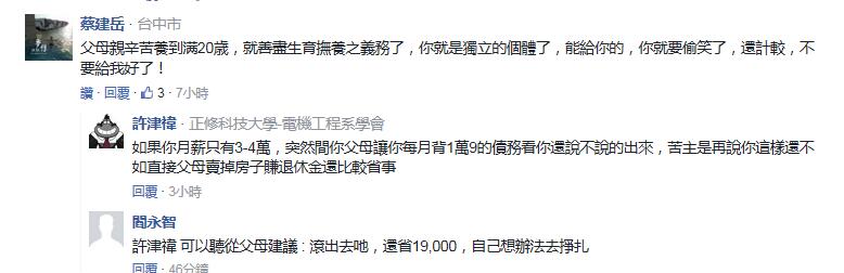 贴文一出也引发了热烈讨论,不赞成者认为这是“父母在自认聪明”;但也有许多网友则是对PO主展开了批评,认为天底下没有白吃的午餐,父母辛辛苦苦养大他们,年老了也需要养老金,父母为自己的退休生活做打算并没有错,“况且两兄弟还净赚了300万”。