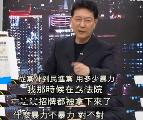 台湾媒体人在节目中分享自己的从政经历,当年民进党闹起来的时候,“立法院”的招牌都被摘下来了,还有脸批“暴力”?