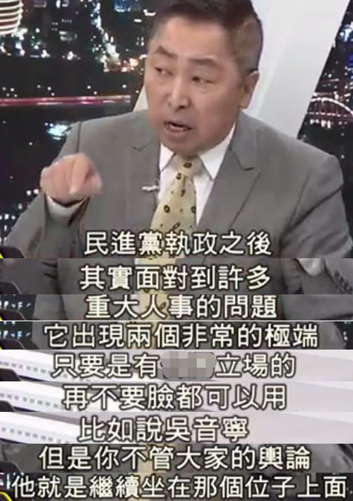 唐湘龙强调,自从民进党上台之后,但凡遇到重大的人事任命,皆是只问颜色,不看对错,吴音宁、吴茂昆,两个“吴氏生非”,即使外界的争议再大、再不要脸,他们也依然可以坐在那个位子上;而反观管中闵,只因为不是“绿”的,即使再要脸,民进党也会想尽办法将他拉下来,“台湾走到今天这个地步还有救吗?”