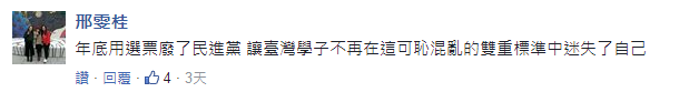 对此,岛内网友也纷纷声援管中闵及台大师生,并谴责台当局“干话”频频,以愚弄百姓为乐;还有人呼吁,年底用选票“废了”民进党,不要让台湾学子在混乱的双重标准中迷失自己。