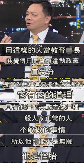 “行政院”前政务委员高思博分析后认为他可能不是无耻而是“怪胎”……