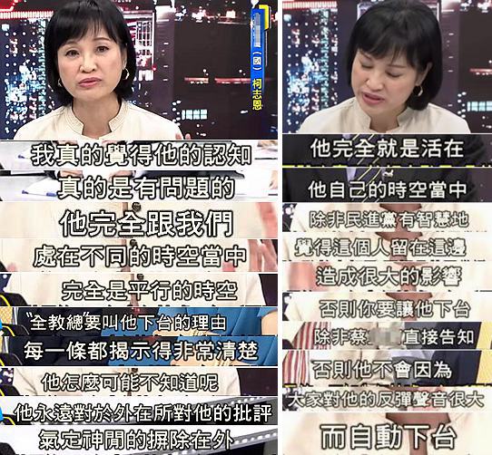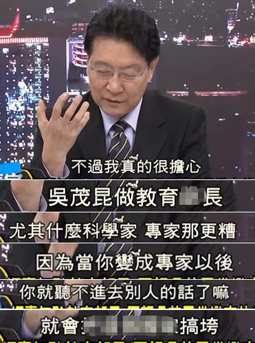 其实吴茂昆肯定知道为什么被轰,那他为什么还敢这么说呢?柯志恩认为是他的认知有问题,“他跟我们完全处在不同的时空”。