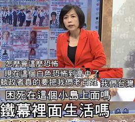 万万没有想到,如今在民进党执政的台湾,“绿色势力”、“白色恐怖”不仅席卷了如台大一般的大学,更蔓延到了高中,知名政论节目主持人黄智贤为此惊呼“怎么会这么恐怖”!