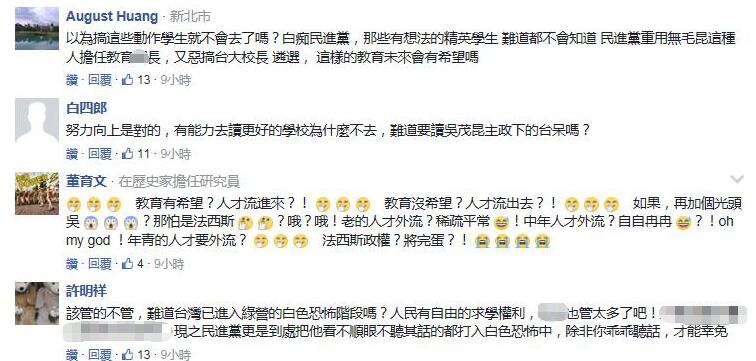 网友们闻此不仅直言“不会以为搞这些动作学生就不去了吧”,更叹:台湾是没有言论自由了吗?