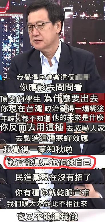 说了这么多,明眼人都很清楚岛内高中毕业生“弃台就陆”的趋势已经挡不住了,为什么蔡当局还要如此强硬阻拦呢?黄智贤一语道出了真相!