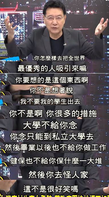 赵少康认为,台当局与其怪别人、设障碍,不如好好去想想怎么才能把世界人才吸引到台湾来;