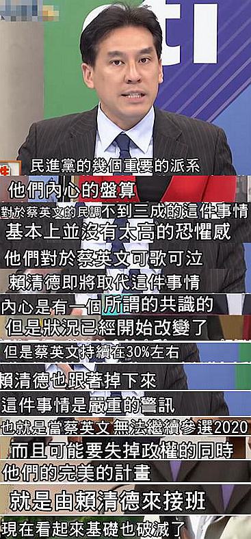黄暐瀚指出,对于蔡英文民调的持续下跌,民进党的几个重要派系及一些“独派大佬”其实并不惊讶,因为还有赖清德可以接替,但如今蔡赖二人皆失绿营民心,民进党的政权恐遭严重打击;而为保政权,黄认为民进党接下来会有“弃蔡保赖”的动作。