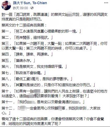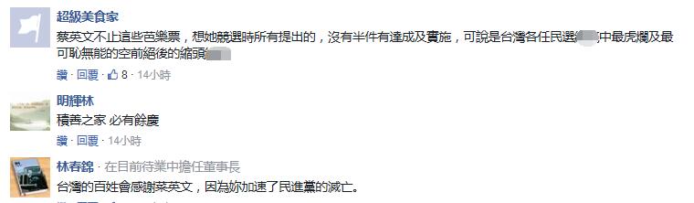 还有网友表示“蔡英文不止这些芭乐票”,为此还很“感谢”她:因为蔡英文加速了民进党的灭亡!