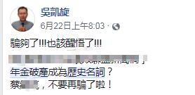 换言之,除军改外,最迫在眉睫的就是劳保的改革,但如今这一“最难的难题”还未攻克,蔡英文怎么就能说出“未来‘年金破产’将成历史名词”这句话呢?这到底是骗自己还是把全台湾民众当傻子呢?