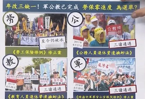 继军改21日“三读”通过后,加上去年已完成“修法”的公务员及教师年金改革,台湾军公教的年改都已完成并确定7月1日将正式一同上路。但不少人却质疑,比起军公教,劳保年改才是当务之急吧,那为何关于劳改的《劳工保险条例》修正案,迄今还被冰在“立法院”?