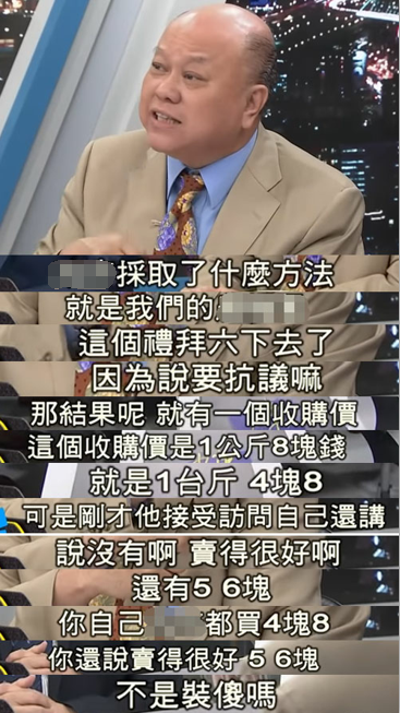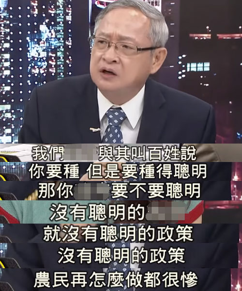 听完林聪贤这番话,台湾资深媒体人赵少康显然不淡定了,他表示,民进党当局不做事先的宣导,也没有分享相关资讯,只是一句轻描淡写的“聪明种”,就想要把责任推给农民吗?