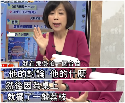 节目中,黄智贤还特别提到一个“小花絮”,采访广州台商时,她竟被一盘荔枝“迷住了”。