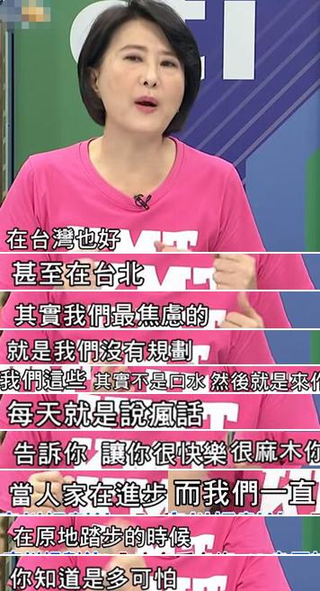 王鸿薇则表示,没有规划的原因在于,台湾如今从上到下的政治人物和官员,不是在忙着打口水战就是作秀,天天说疯话误导百姓使其麻木,更哀叹“当我们原地踏步的时候,人家可都是在进步、甚至是在跑步中了”。
