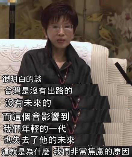 7月7日,洪秀柱率团出席“海峡两岸青年发展论坛”时表示,两岸问题若无法解决,那台湾就无未来与出路,而这会让台湾年轻一代也失去未来,“这就是为什么我们非常焦虑的原因”。