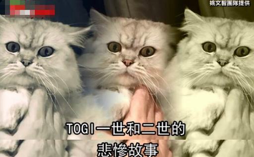 大概是为了体现“猫奴”的人设,姚文智抱猫接受采访时自曝曾养过3只猫,都叫做“Togi”,但境遇却……他的第一只猫是友人赠送的,但某天却“误食毒死”;后来朋友又送一只,但因其太太怀孕就把猫送人了;现在这只“Togi三世”呢是个流浪猫,还是个品种为金吉拉的名贵流浪猫。