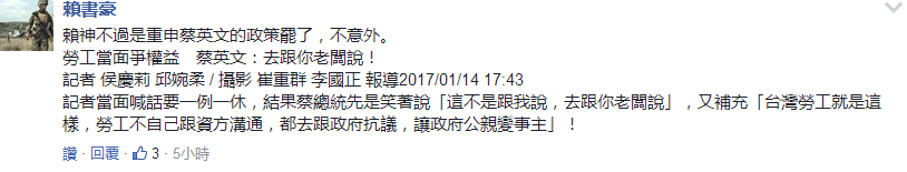 换句话说,劳工没有达到4.8万的薪酬水平,不是我赖清德说法有问题,而是你们劳工自己不争取。