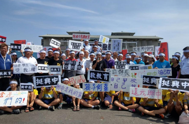 这个做法一下让兴中的校长、老师、家长都“炸”了!当地人迅速成立自救会抗议县府决策过程粗糙蛮横,顶着烈阳齐聚在兴中大门口绑白布条、系黄丝带,高呼抗议口号,呼吁县府悬崖勒马,收回成命。