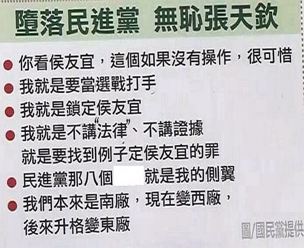 “连他自己都承认自己是东厂”,国民党文传会代理主委唐德明在分析后指出,张天钦的言论透露出四点算计:打击侯友宜选情、架空“主委”黄煌雄、阴谋诡计帮助选、践踏民主仇恨报复!他表示在民主的台湾,还自评为鹰犬、自甘为打手,“这就是仇恨蒙蔽眼睛”。