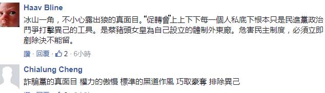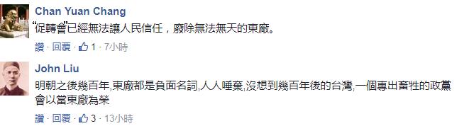 于是就有人直言“促转会”就是“黑机关”、“民进党专属门斗组织之一”,更说这是蔡英文“为自己设立的体制外东厂”、“无法无天”。