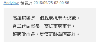有网友力挺韩国瑜,为他打气加油,当然也没忘了撒一把陈其迈的家族黑料: