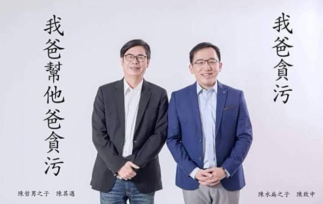 下面这张图跟网友的评论堪称绝配了~陈水扁之子与陈哲男之子的“贪污二代CP”.
