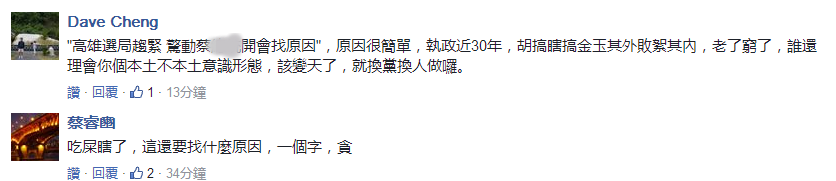 这个说法,显然是把蔡英文也拉下了水,县市选举这么难,还不是因为你执政无能吗?台湾网友也在评论区说出了陈其迈的心里话。