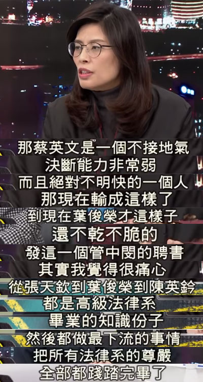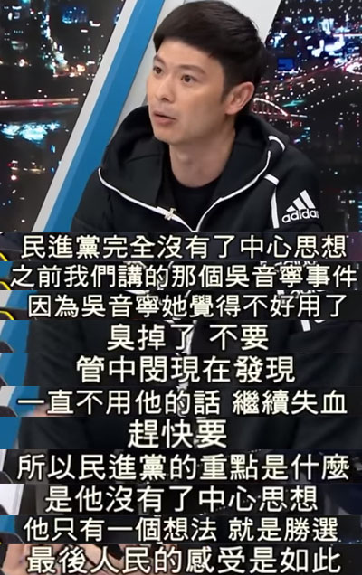 针对蔡英文当局频频转弯的做法,国民党准台北市议员李柏毅甚至表示,民进党已经失去了自己的“中心思想”,“看到吴音宁不好用,转手丢掉;看到管中闵不用不行,就赶快要。这样的民进党只有一个想法,那就是胜选,民众的感受就是如此。”