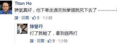 该名骑士事后将行车记录仪上传网络,多数网友都谴责轿车驾驶行为不当,“这一定告到底!很明显是蓄意冲撞”、“脾气真好,他下车走过来我拳头就尻下去了”;也有人为骑士的安全捏了一把冷汗,“喷到隔壁车道会直接被爆头辗毙”。