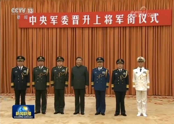 中央军委晋升上将军衔仪式11月2日在北京八一大楼隆重举行。中央军委主席习近平向晋升上将军衔的中央军委委员、中央军委纪律检查委员会书记张升民同志颁发命令状。(央视网)