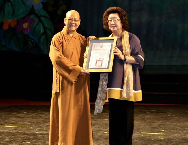 高雄市教育部门负责人向佛光山慈容法师授予奖状,感谢佛光山致力教育事业推广。(图片来源:台湾“中国时报”)