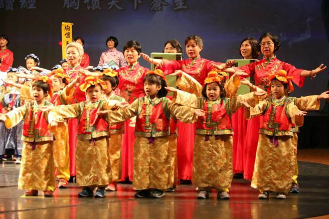 福智文教基金会的幼童演出“朗朗书声心乐飘”,现场表演三字经。(图片来源:台湾“中国时报”)
