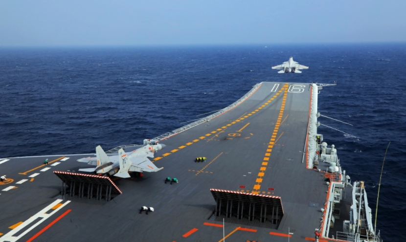 中国海军辽宁舰训练中。(图片取自网络)