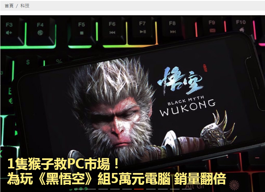 除了在现象层面“看热闹”,有台媒也开始关注事件背后有关繁荣社会经济的“门道”。台湾《工商时报》社论指出,即使一些向来对“中国制造”抱持负面态度的评论者,都承认这款游戏无论在故事性、可玩性、制作水平方面,都已达国际水平。《黑神话:悟空》的成功,某种程度展现了大陆近年来“硬”“软”两路并进、推动产业转型升级的企图心。