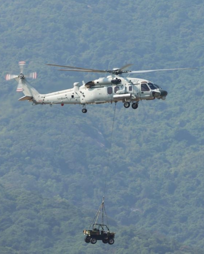 舰载型直-20的出现标志着中国海军在舰载直升机领域取得重大突破,其机身两侧短翼,可挂装机炮吊舱,也可挂装鱼雷,执行反潜和针对海陆目标进行火力支援的任务。在表演环节,海军版直-20挂装一辆轻型突击车,吸引现场观众不住按快门。在实战中,当台军看到直-20时,可能意味着台海空域、海域作战已告结束,登陆作战已经开始。