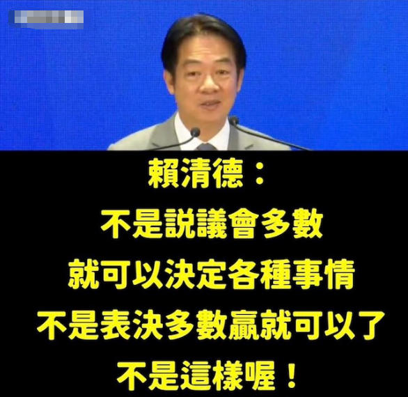 第二讲论述更加震惊四座,赖清德抛出“杂质说”。他表示,针对在野民代的“大罢免”要“像打铁铸剑一般,一锤又一锤,千锤百炼,百炼成钢,打掉‘杂质’”。问题是,蓝白在选举中拿到6成选票,赖清德才是少数。舆论痛批“人民不是杂质,只有民主变质”。