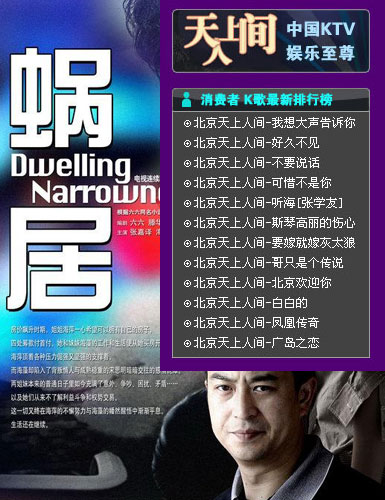 笔者注意到,北京天上人间网站最左侧有天上人间消费者K歌最新排行榜,但出人意料的是,“天上人间”点播率最高的歌曲竟然是曾经火爆一时的电视剧《蜗居》的片尾曲《我想大声告诉你 》。(5月24日《中国青年网》)