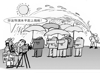 日前有网友发微博称,四川乐山用水枪制造领导冒雨视察工作的场景,并附有现场照片。微博涉及的乐山高新技术产业开发区作出回应称,该微博反映的场景确有其事,但并非是视察工作,而是拍摄制作宣传片,“冒雨工作”是拍摄机构创意(9月16日《京华时报》)。