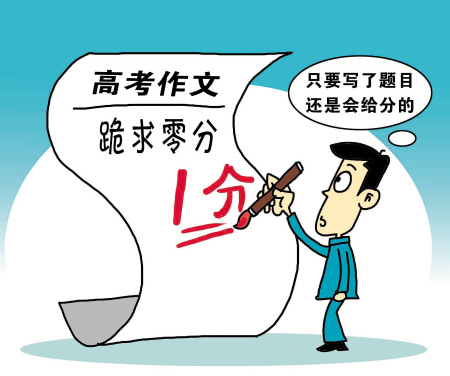 通篇空白,只在标题上写了四个字“跪求零分”,得一分;试卷当成了画稿,写下题目之后,画了一个类似于QQ表情的哭脸,通篇再无一字,得两分!这些看似奇葩的作文,都是出自今年江苏高考生之手,让阅卷老师相当无奈。很多人不解,高考中在密集分数段,一分就相差两三千人,考生们恨不得“分分计较”,怎么还会有考生“跪求零分”呢? (6月23日《现代快报》)