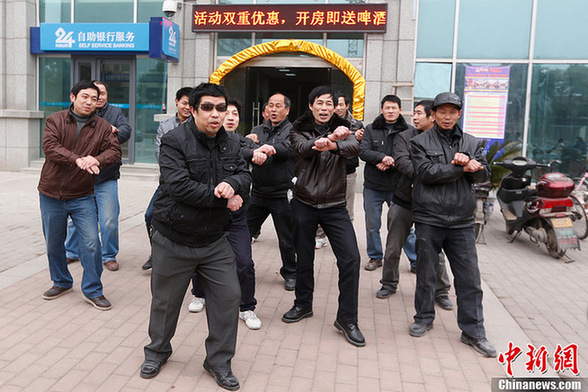 资料图片:2013年1月21日下午,在武汉东西湖区七雄路星光大道音乐会所门前,一群农民工跳起了江南Style骑马舞,引来不少路人围观。记者了解得知,年关将至,40多位农民工因为没拿到工钱,被逼无奈才“出此下策”。(图片转自中新网)