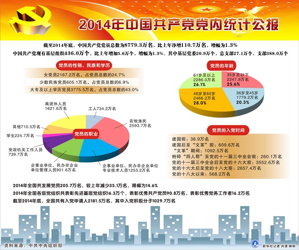 图表:2014年中国共产党党内统计公报 新华社记者 肖潇 编制