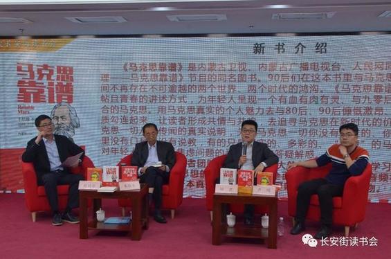 5月20日为了纪念马克思诞辰200周年,帮助广大党员干部、青年学生走近马克思、了解马克思、学习马克思主义,由长安街读书会联合团中央“青年之声”学习者服务联盟、东方出版社主办,全民阅读促进委员会、中国青年网、“青年之声”综合服务办公室承办,共同发起了第二十四次长安街读书会暨“靠谱的马克思导师”集体读书学习活动。本次活动围绕《马克思靠谱》、《青年们,读马克思吧!》两本书,特邀中国社会科学院原副院长、中华人民共和国国史学会会长朱佳木,中国社会科学院研究员、国家“万人计划”青年拔尖人才、《马克思靠谱》执行主编、执笔人钟君,中国矿业大学(北京)马克思主义学院讲师、院长助理、中国社会科学院世界社会主义研究中心特邀研究员、内蒙古卫视《开卷有理》第一季《马克思靠谱》主讲嘉宾卢刚作为活动嘉宾,从书本到现实,从理论到实践,共同介绍了马克思及马克思主义。读书会由《中国纪检监察报》刘同华主持。