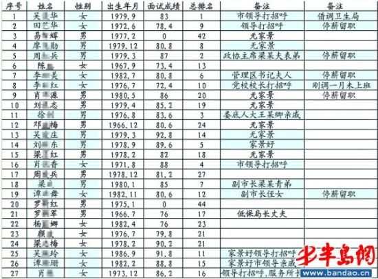 近日,某网帖晒出湖南涟源市经济开发区公开选调15名工作人员的考生成绩表,成绩表备注一栏有“市领导打招呼”、“家景好”等字眼,引起数千网友转发评论。(新华网2月22日)