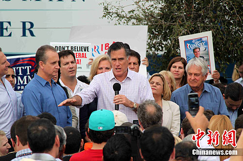 当地时间1月29日,美国共和党总统参选人、前马萨诸塞州州长罗姆尼在佛罗里达迈阿密郊外举行盛大造势活动,展开选战“冲刺”,吸引大批支持者前来助威。中新社记者李洋 摄
